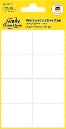 Etikett, 38x29 mm, kézzel írható, lekerekített sarkú, AVERY ZWECKFORM, 40 etikett/csomag
