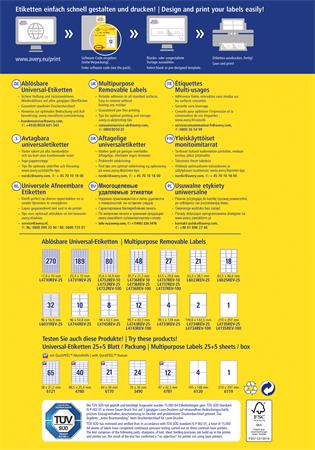 Etikett, univerzális, eltávolítható, 210x297 mm, AVERY ZWECKFORM, 30 etikett/csomag